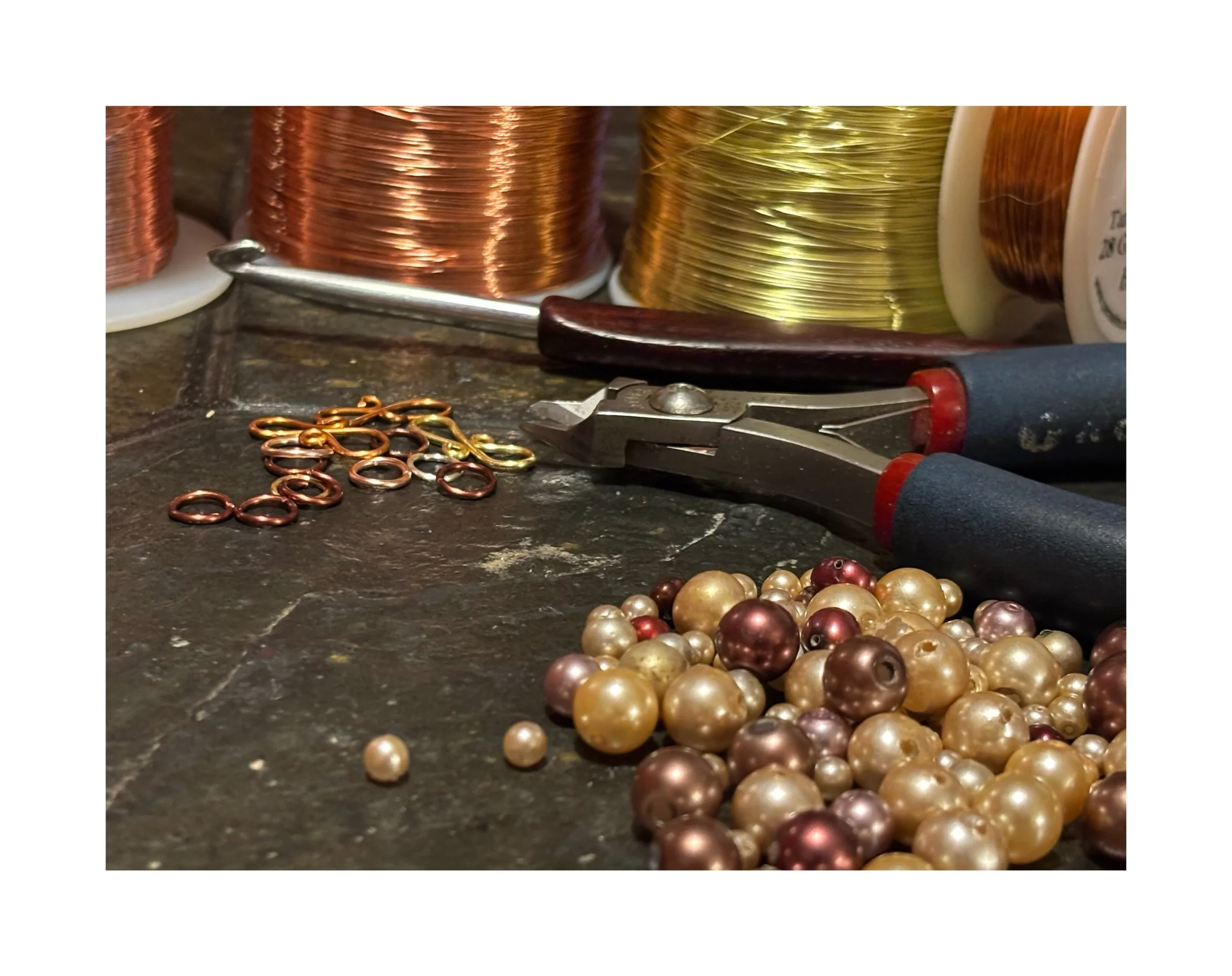 This workshop is led by artist Carrie Lambert. In this class session we will explore the steps to create a beautiful crocheted wire and bead bracelet unique to you. Dainty seed beads, funky mismatched beads, classic metals, whimsical colors or classic bold statements: express your mood with a handmade bracelet. All materials are provided and each participant will end the class with a finished bracelet and the knowledge to create more. Additional supplies are available for purchase. No prior crochet or jewelry making experience is needed.
